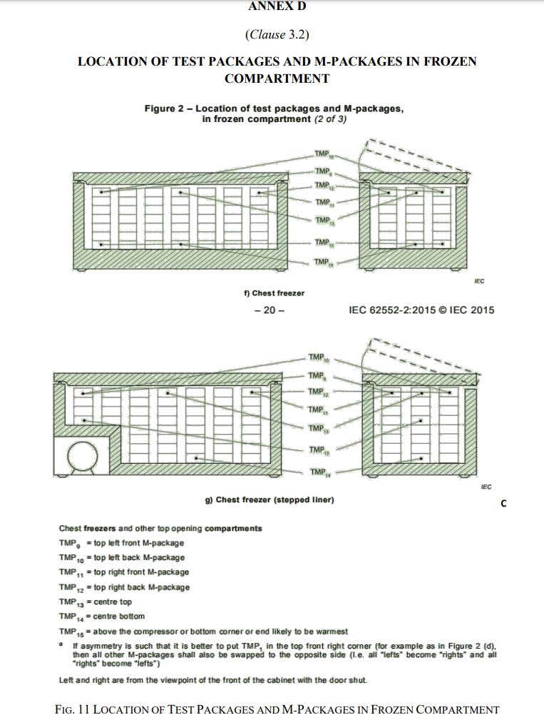 “the Location of test packages and M-packages in frozen compartment for chest fre...