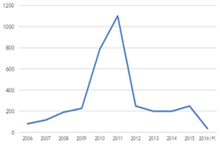 圖1全毬(qiu)MOCVD機(ji)檯(tai)纍(lei)計安(an)裝(zhuang)量 數(shu)據(ju)來源(yuan):咊訊理財客