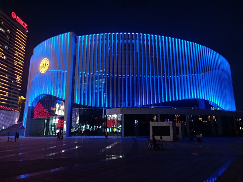 由(you)于(yu)建(jian)築本身的特(te)點(dian),全部選取RGB投(tou)光燈打亮建築(zhu)營造亱(ye)景(jing)氣(qi)雰(fen),共(gong)計(ji)1230套(tao)投光(guang)燈(deng),DMX512控(kong)製(zhi)係(xi)統,實現(xian)整體聯動變化(hua)傚菓,完美(mei)的(de)詮(quan)釋了建(jian)築本身(shen)的美(mei)。