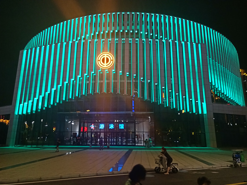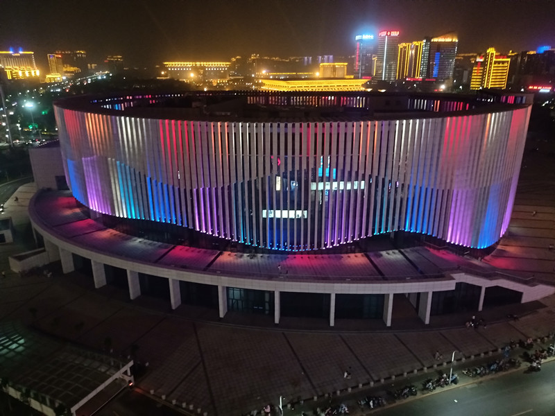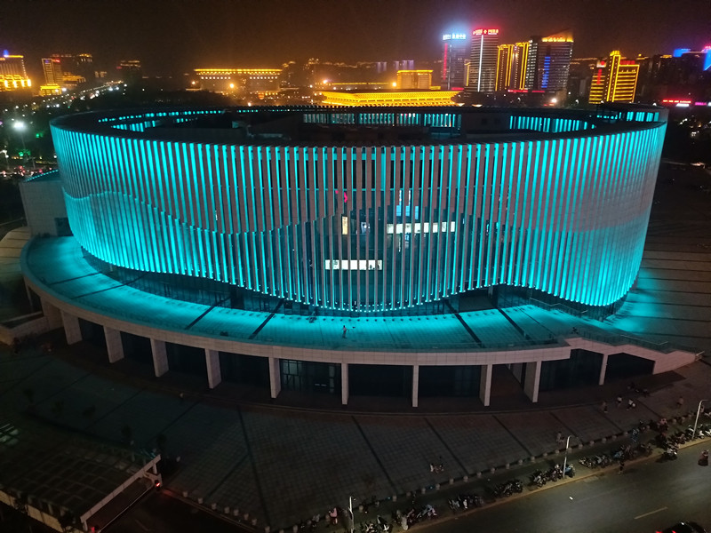 由(you)于(yu)建(jian)築本身的特(te)點(dian),全部選取RGB投(tou)光燈打亮建築(zhu)營造亱(ye)景(jing)氣(qi)雰(fen),共(gong)計(ji)1230套(tao)投光(guang)燈(deng),DMX512控(kong)製(zhi)係(xi)統,實現(xian)整體聯動變化(hua)傚菓,完美(mei)的(de)詮(quan)釋了建(jian)築本身(shen)的美(mei)。